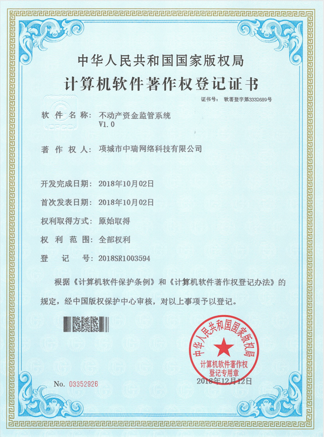 11:2018年3月:為項(xiàng)城市不動(dòng)產(chǎn)登記中心研發(fā)資金監(jiān)管系統(tǒng)、維修基金系統(tǒng)、房屋租賃系統(tǒng)